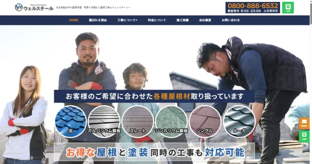 サービス内容雨漏り修理の相談、修理工事(部分修理可)、屋根診断、火災保険による0円修理
