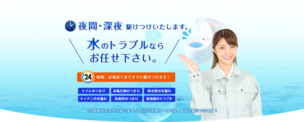 | 運営会社 | GEN水道サービス 〒451-0045 名古屋市西区名駅二丁目34番17号 セントラル名古屋1101号 |