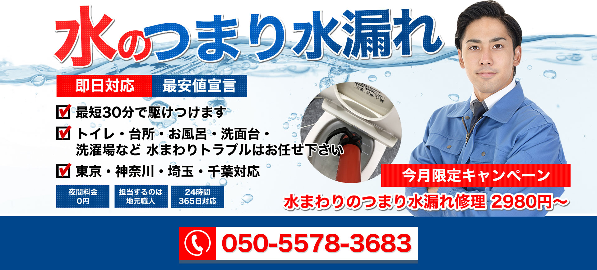 | サービス内容 | トイレ・お風呂・キッチン・洗面、洗濯所、屋外のつまりや水漏れなど幅広く対応 |