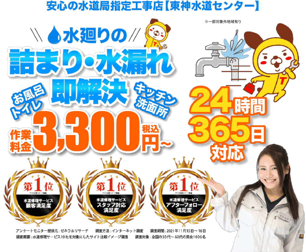 | サービス内容 | 水まわりトラブル修理(つまり・水漏れ)メンテナンス、住宅設備の設置、給水排水工事 |