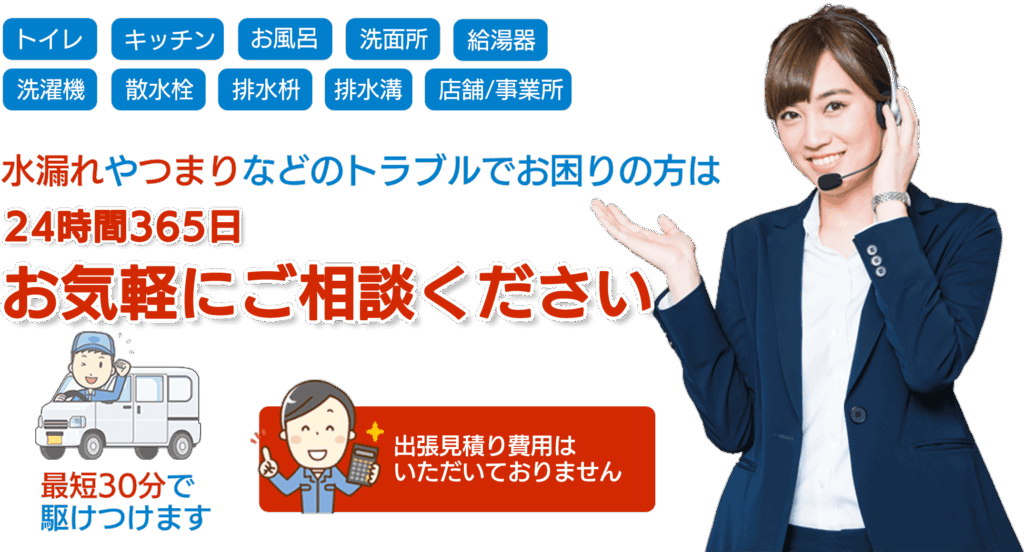 | サービス内容 | トイレ・お風呂・キッチン・洗面、洗濯所、屋外のつまりや水漏れなど幅広く対応 |