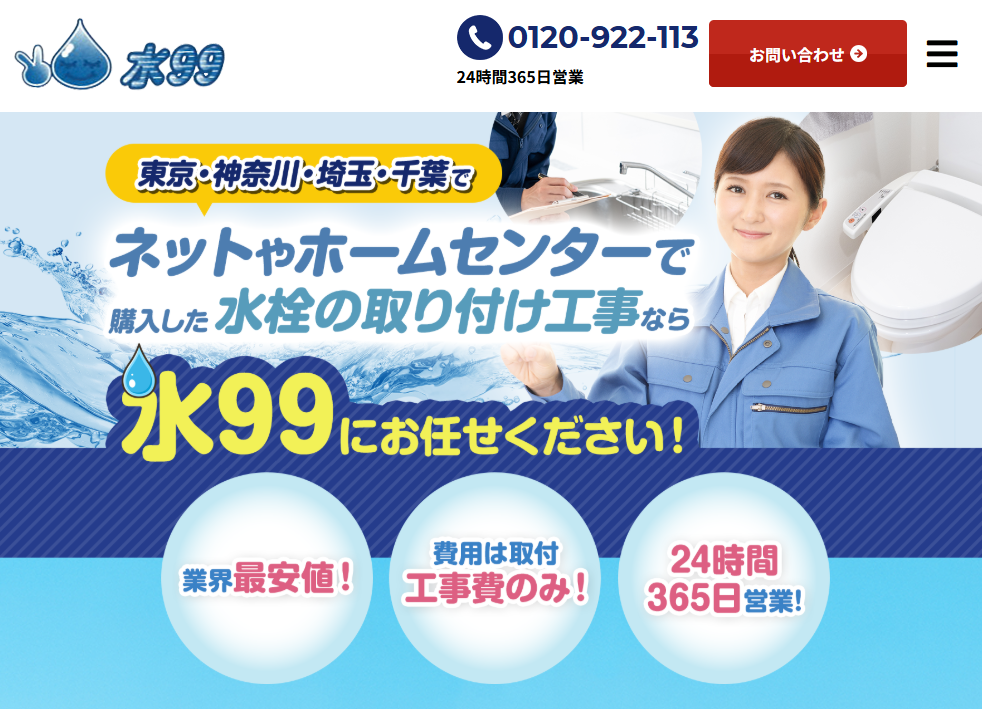 | サービス内容 | 水道工事・水道修理・水漏れ・つまりなど、水廻りのトラブル |