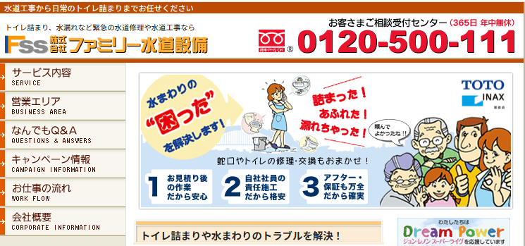 | 運営会社 | 株式会社ファミリー水道設備 〒167-0034 東京都杉並区桃井3-10-1-210 |